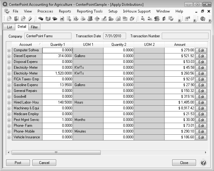 CenterPoint® Accounting for Agriculture - Distribute General Revenue and Expenses or Payroll Expenses
