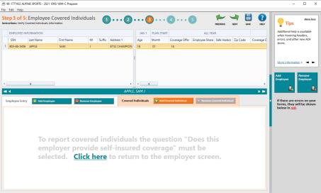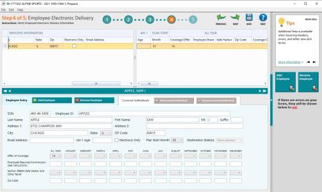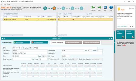 Note: The example below is for the 1094/1095-C forms, if you are processing the 1094/1095-B forms the screens that display may appear slightly different.