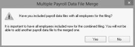 3. On the Multiple Payroll Data File Merge screen, click Yes.