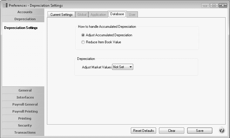 - Select File > Preferences > Depreciation > Depreciation Settings.