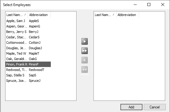 . To select all employees, click the double-right arrow