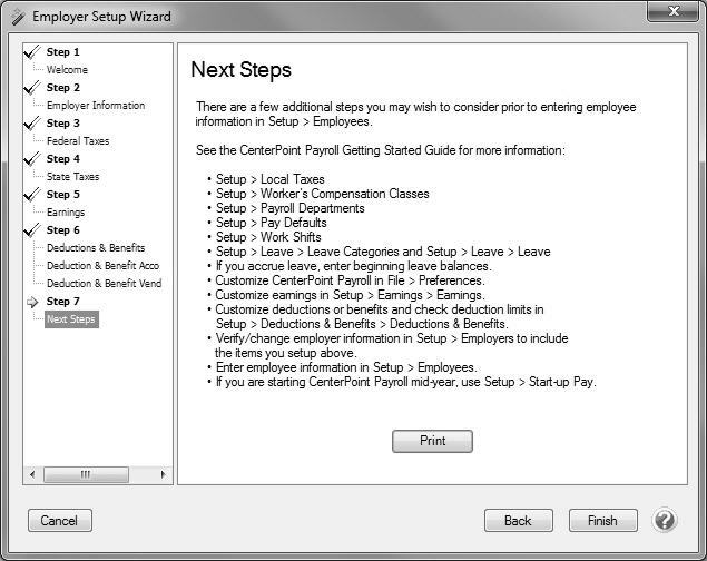Step-by-step Instructions for the CenterPoint Payroll Setup Wizard