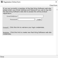 - If you are currently a member of the Red Wing Software website and you forgot your Username and Password, click the Forgot Login Info link. After you receive your Username and Password via your e-mail address, enter your Username and Password, and then click Login to access the online product registration.
