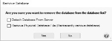 - Leave both check boxes unchecked. At the Do you want to remove the database from the database list message, click Yes.