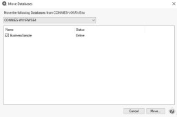 - In the Move the following databases from ###\RWS to drop down box, select (Server)\RWS64.
