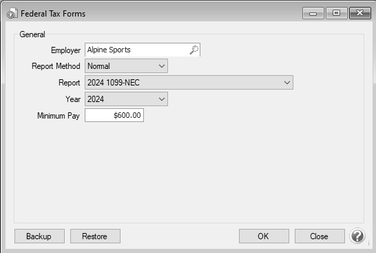 5. Process your 1099s from Reports > Federal & State Payroll Forms & Reports > Federal Tax Forms by selecting 2024 1099-NEC.