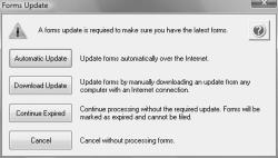 Note: Expired forms will be marked as expired and cannot be filed. This screen will continue to display each time you choose not to perform the required update until you click Yes when first prompted to install the available update or you click Automatic Update or Download Update to perform the required update from this screen.