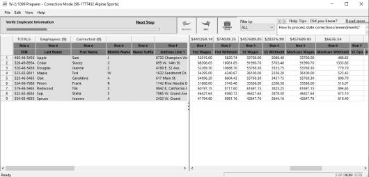 • To correct any box values including names, addresses, and social security numbers, simply select the box in the employee row and just type in the new value.