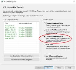 2. Choose Correct Completed W-2s on the right and click Next.