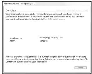 After submitting, you will receive a new Aatrix Filing Identification Number (AFID).