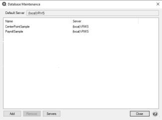- On the Database Maintenance screen, click Add in the bottom left corner.