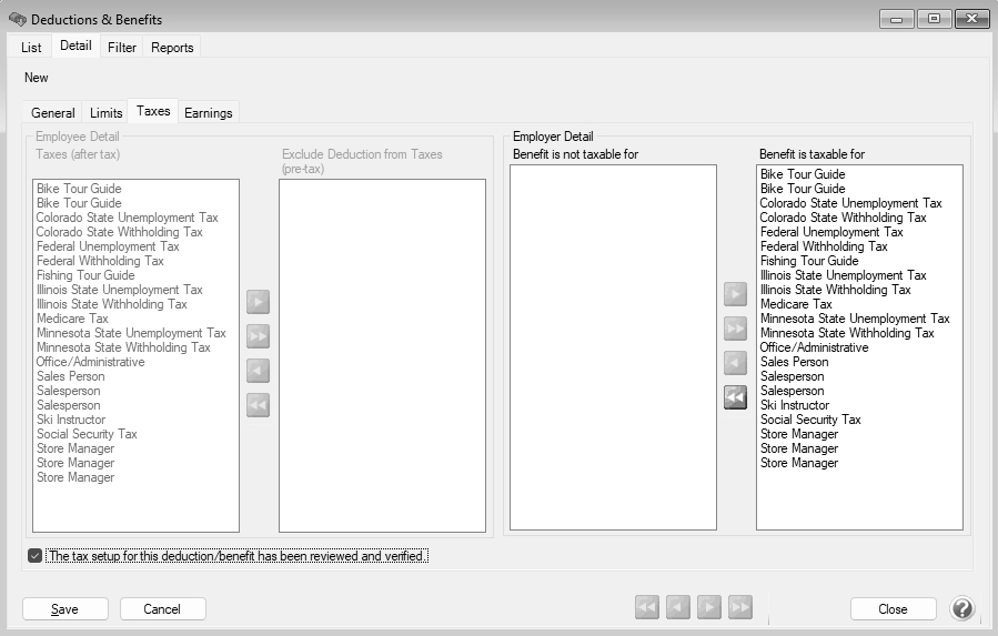 - Select the This tax setup for the deduction/benefit has been reviewed and verified. check box.