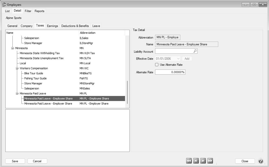 - Expand the Minnesota Paid Leave node and select Employer.