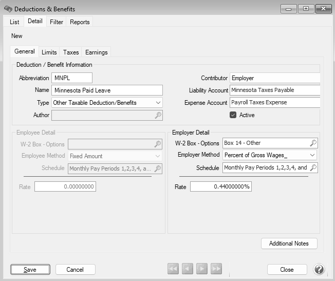 - From the left side of the screen, expand the Minnesota Paid Leave node so you see the Employer and Employee portions.