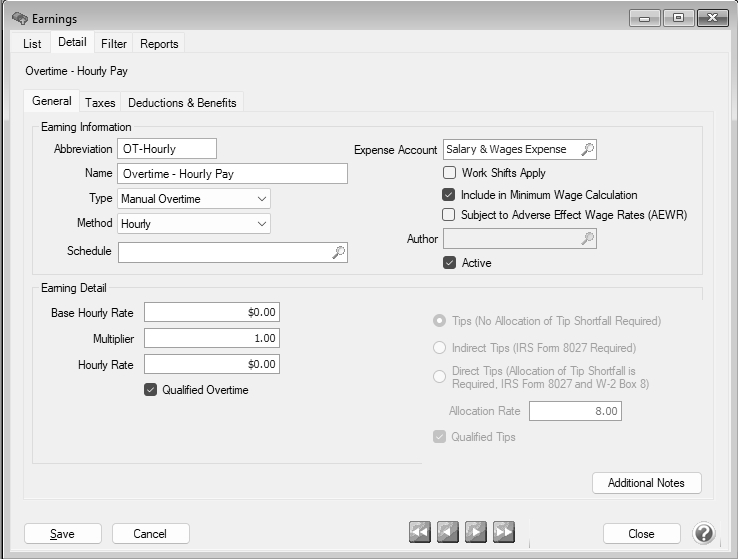 - Select the Qualified Overtime check box. (only applies to Manual Overtime and Calculated Overtime Earning Types).