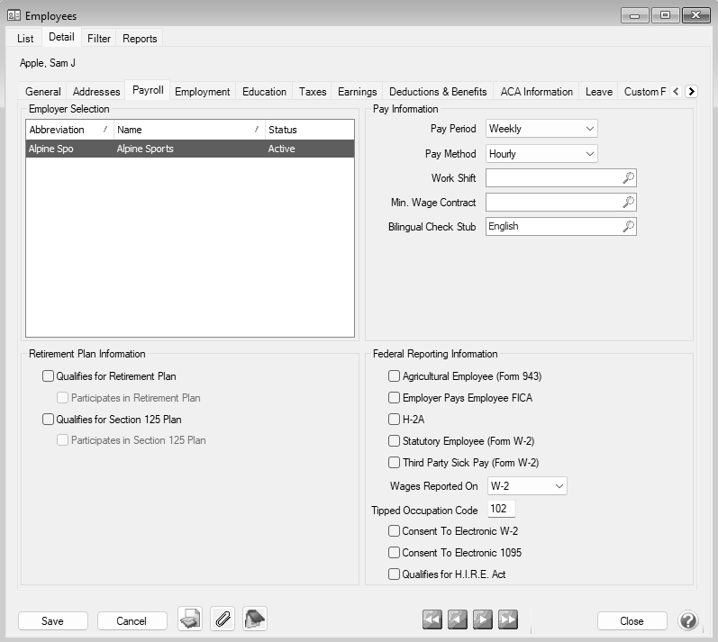 - Select Setup > Employees. Select an employee that should have a tipped occupational code assigned and then click Edit.