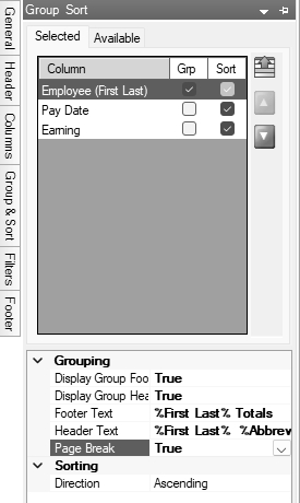 If you want a page break after each employee to make the report easier to hand out, select the Group & Sort tab from the left side of the screen.