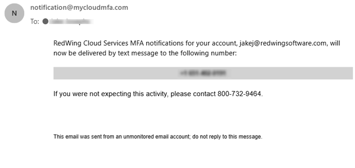 - See the How do I authenticate my account and log into the Red Wing Cloud Services? question in the Multi-Factor Authentication Frequently Asked Questions section for more information.