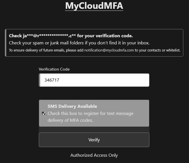 - To ensure delivery of future emails, add notification@mycloudmfa.com to your contacts or whitelist.