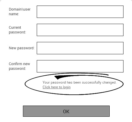 - At the Your Password has been successfully changed message, click the Click here to login link or click OK.