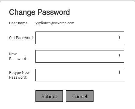 - Enter your Old Password, a New Password and Retype New Password. When the password criteria has been met, the red ! and password requirements will display in green.