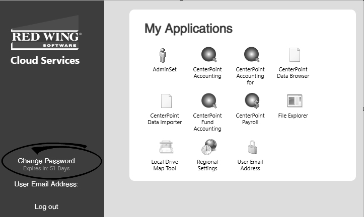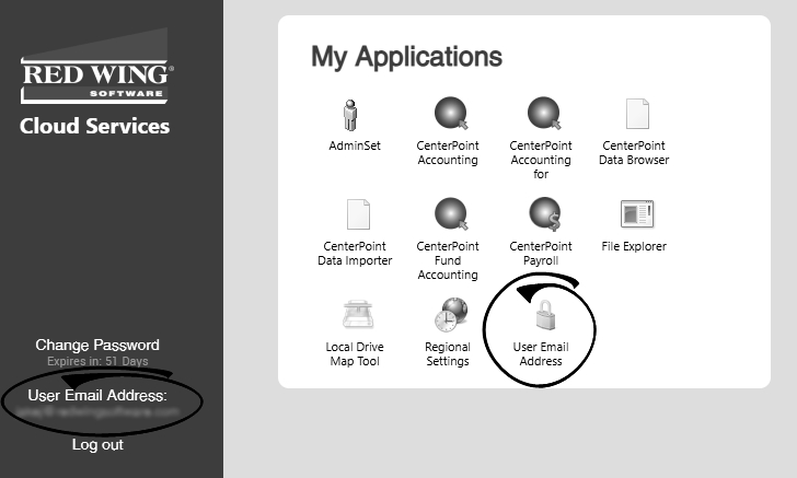 - Under My Applications, click User Email Address. If you are not using the Microsoft Edge in Internet Explorer compatibility mode browser, you will be prompted to login with the User Name and Password provided to you from Red Wing Software.