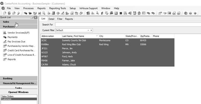 The List tab is where you will see items that have already been added to the system. It is also where you will begin to create new items or change existing items. All of the Setup screens in CenterPoint have some common features, each Setup screen has a List tab.