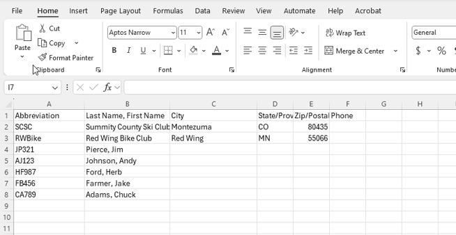 - Press Ctrl + V to paste the information copied from the List tab into the Excel document.