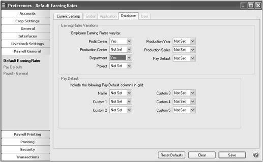 - Under Employee Earning Rates, change the earning rates you want to track to Yes. In the example below, we will have different rates by profit center and department for the employee. If you choose to track pay defaults by including pay defaults, under Pay Defaults, select the custom columns that define information related to a selected Pay Default, and then follow the Pay Defaults Preference section below..