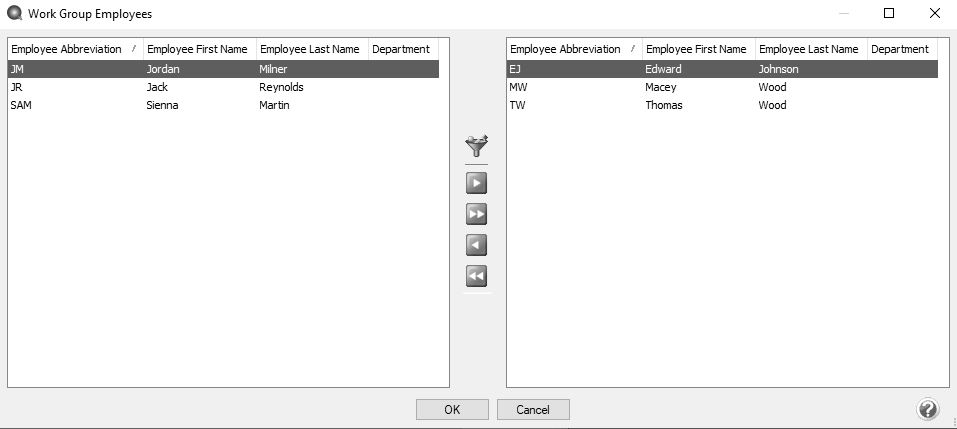 - When you have selected all of the employees you wish to enter the work group time sheet for, click OK.