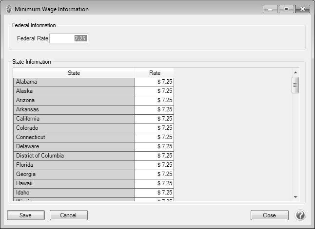 In situations where you have workers that get paid using piecework or pay H-2A workers that have contracts that differ between workers and domestic workersit is necessary to make sure that they are also achieving minimum rate wages. Red Wing Software does not automatically update minimum wage rate changes for each state. You will need to do this manually.