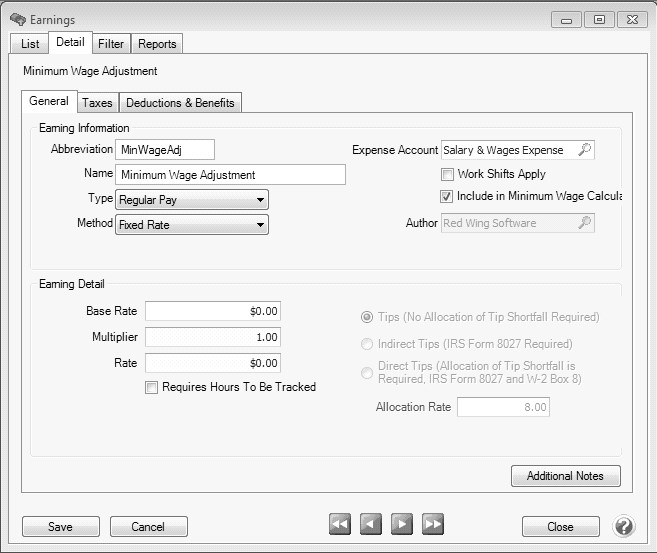 3. In the Earning Information, click to select the Minimum Wage Adjustment Earning.