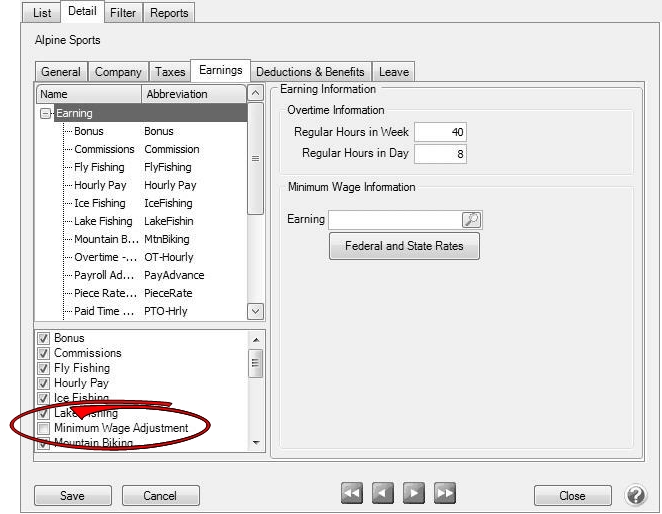 2. On the lower-left, check the box for the Minimum Wage Adjustment earning. This will add the earning to the list above.