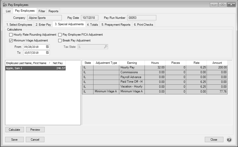 Step 6 - Pay Employees with the Minimum Wage Adjustment