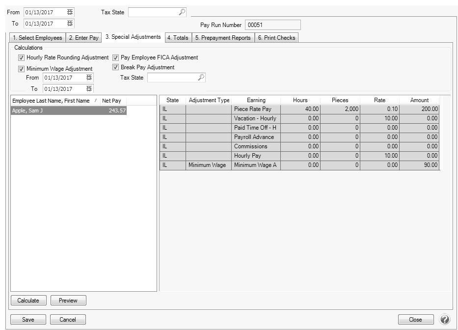 3. Click the 3. Special Adjustments tab. Verify the Minimum Wage Adjustment is selected.