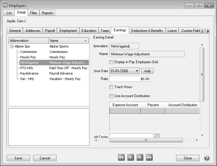 4. Click Save. Repeat Steps 2-3 for each earning to be included in the minimum wage calculation.