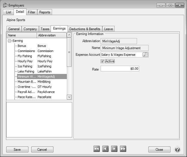 1. In the Earning Details, enter the Expense Account for the Minimum Wage Adjustment earning.