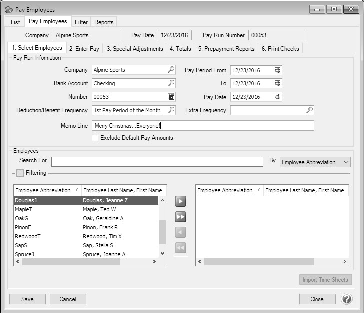 • To select a single employee, select the employee you want to pay, and then click to move the employee to the right side of the screen.