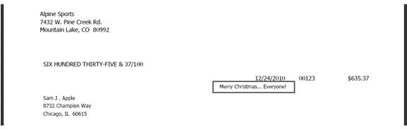 • Memo Line - Enter an optional memo. The memo entered here will appear in the Memo Line 1 field of any check/advice definitions that include the field (including the system-supplied checks.)