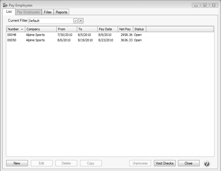 1. Select Processes > Pay Employees or Processes > Payroll > Pay Employees.