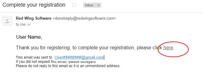 - Check the email address you provided above for an email from Red Wing Software.