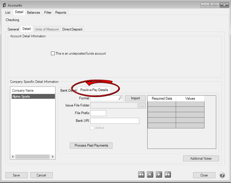 6. Click the Positive Pay Details tab.