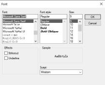 - The Font screen will display. Select your desired Font, Style, and Size. Click OK.