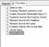 Note: If a system-supplied report has security restrictions for users (you can restrict users from viewing/printing specific reports), the user will also be restricted from any favorites based on the system-supplied report. Favorites created prior to version will need to be recreated to have security restrictions applied. See the Users and Security topic for information about creating users, user groups, and setting security policies.