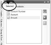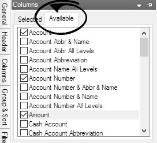 1. To add a column of data to the report, select the check box next to the column name. Select the Selected tab to display all of the columns you selected on the Available tab to display on this report.