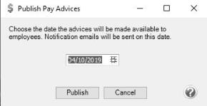 3. If you selected the Publish Pay Advices check box, choose the date the advices will be made available to employees (the date will default to the pay date) and then click Publish.