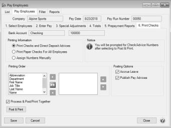 1. Process payroll following your usual procedure until you make your selections on the 6. Print Checks tab, continue with Step 2.