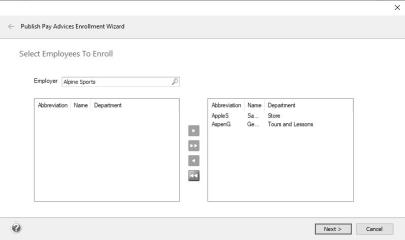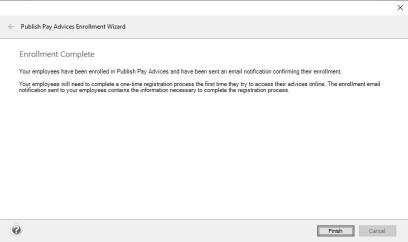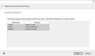 • At the "These employees will be enrolled in Publish Pay Advices, click Yes to enroll the selected employees.