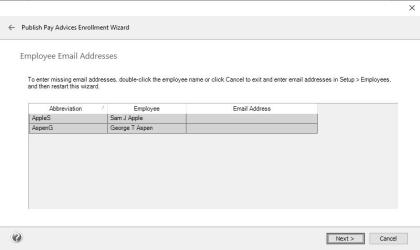 • At the "These employees will be enrolled in Publish Pay Advices and sent an enrollment email message" click Yes to enroll the selected employees.