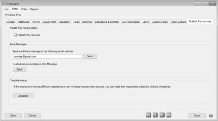 1. Select SetupEmployeesPublish Pay Advices tab.